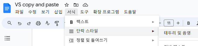 VS에서 바로 구글문서로 붙여넣기 한다.