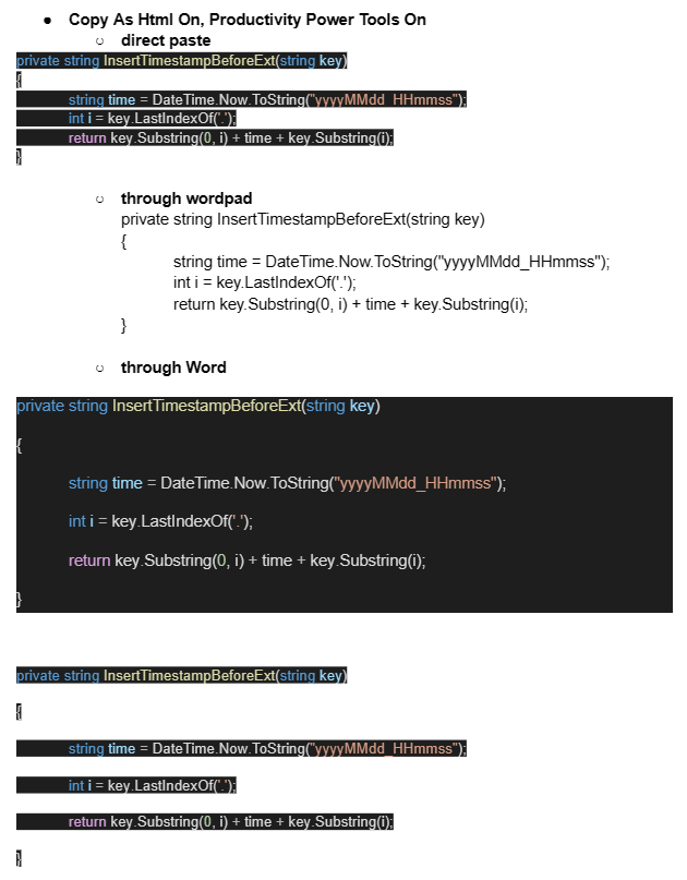 내 환경에서 현재까지 Visual Studio → 구글문서 붙여넣기 방법은 다음과 같다.